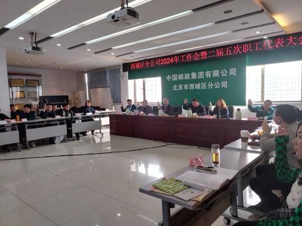 西城區分公司二屆五次職工代表大會于2024年2月27日召開。大會聽取并審議了王立波總經理所做的題為《堅持守正創新 加快轉型升級 著力構建“六位一體”高質量發展新格局》的行政工作報告;審議并通過了《2023年為職工辦實事項目完成情況和2024年為職工辦實事項目立項的報告》、《關于簽訂中國郵政集團有限公司北京市西城區分公司集體合同和工資集體協商專項協議的說明》、《中國郵政集團有限公司北京市西城區分公司職工幫扶救助基金管理辦法》,審查了2023年度“職工幫扶救助基金”資金使用情況的報告,業務招待費管理和使用情況的報告,工資總額、勞動保護和教育經費使用情況的報告,廉政建設基本情況的通報。王立波總經理和尹志國主席分別代表企業方和職工方簽訂了集體合同和2024年工資集體協商專項協議。