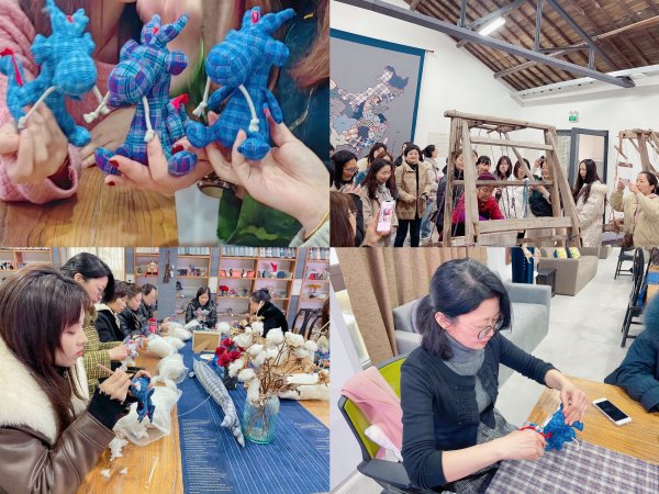 《江風(fēng)海韻》中所提,崇明土布紡織生產(chǎn)工藝到明朝中葉已十分繁盛,流傳已有五百多年的歷史,如今已被列為上海市非物質(zhì)文化遺產(chǎn)項(xiàng)目。走進(jìn)座落于惠民村中部的崇明土布創(chuàng)意活動館,女職工們步入四四方方的鄉(xiāng)村庭院式展館中,于一匹匹色彩斑斕、寓意美好的布匹中,感知早期“崇明姑娘”的勤勞與智慧;于一件件樸實(shí)而靈巧的作品中,感觸土布手工作品略顯粗糙的天然肌理感與細(xì)密精致的針腳形成的獨(dú)特視覺沖擊,輔以精巧的配色和拼接手法后,作品承現(xiàn)出的一種古樸而靈秀的美。女職工們聆聽女館長講述創(chuàng)業(yè)的勵志故事、親身體驗(yàn)織布的樂趣、親自縫制龍年土布手工作品,感受著現(xiàn)代鄉(xiāng)村產(chǎn)業(yè)美學(xué)和非遺文化的魅力,同時也堅(jiān)定了女職工們昂揚(yáng)奮進(jìn)的信心。