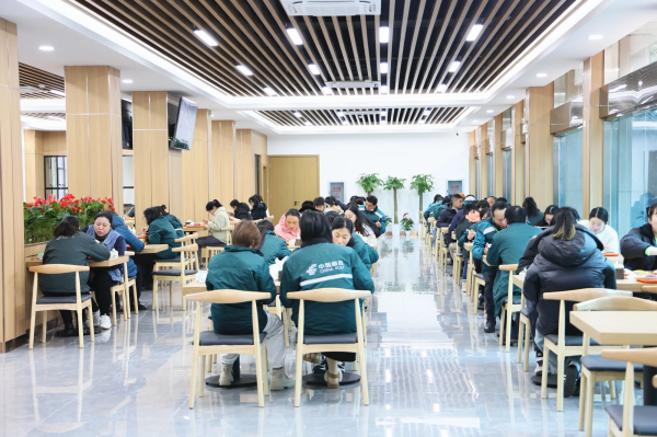 為充分踐行“四去”導向,增強員工的幸福感和獲得感,武漢分公司經(jīng)過重裝改造的金家墩智慧食堂于3月6日正式投入運營。走進寬敞明亮的用餐大廳,地面光潔如鏡,桌椅擺放整齊,“光盤”“膳食”等健康飲食文化板牌讓人賞心悅目,整體環(huán)境舒適溫馨,食堂單層面積達987平方米,可容納300人同時就餐。軟硬件設施經(jīng)過全新升級后,配餐區(qū)和用餐區(qū)分區(qū)運作、功能分明,專門配備傳菜電梯,提高配餐效率,還上線自動化餐具回收清洗系統(tǒng),更加節(jié)能高效、安全衛(wèi)生。