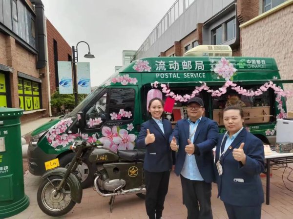 同時,第十四屆北京國際電影節于2024年4月18日至4月26日舉辦,電影節九大大板塊之一的“北京市場”落戶于郎園Statio,并設置專業區、大眾區和集市區。朝陽區分公司通過流動郵局的形式入駐服務“北京市場”,為電影節提供服務。利用具有春季特色的流動郵車、個性化明信片打印機、老式郵筒和郵政投遞摩托車等元素,打造了一個獨具特色的“流動郵局”。 這個流動郵局不僅提供了各種電影題材的郵品和文創產品,還展示了中國郵政深厚的文化和歷史底蘊。