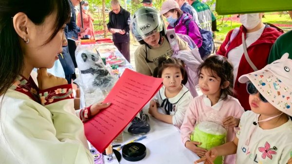 西城郵政以“展現詩意西城”為主題,在文創產品開發和互動游戲環節下足功夫,推出以丁香花和主題建筑為主要元素的異形明信片,深受年輕人喜愛。許愿打卡墻成為游客駐足留念的打卡點,詩詞接龍活動則為小朋友們提供了一個游戲、展示的舞臺。