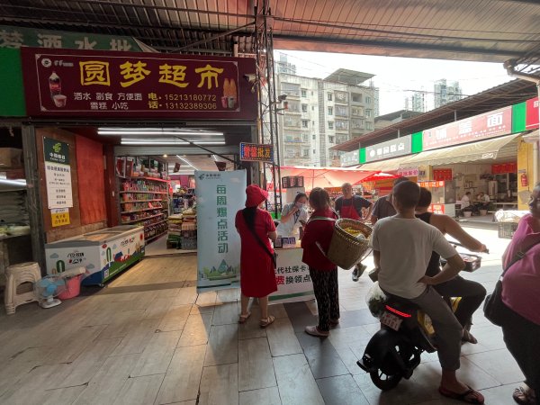 與曾家智慧市場的“你來我往”,除了讓商戶使用郵政碼牌、開展系列活動外,曾家郵政所還在商戶的店鋪、攤位上置放廣告牌,用于對當期開展的活動廣而告之,如余額爆點活動、臨界客戶提升、郵政VIP客戶十大活動權益等,將廳堂擴展到菜市場內。