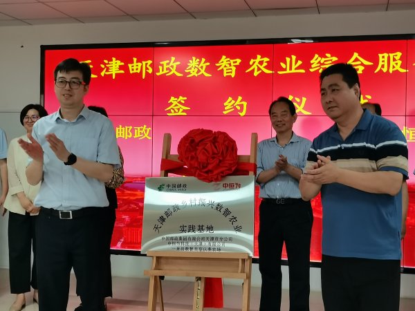 為貫徹落實集團公司數智化賦能農村電商發展要求,扎實推進郵政服務鄉村振興工作,近日,天津郵政在津南國家農業科技園與中恒為科技公司簽訂“數智農業綜合服務項目意向合作協議”。津南區區長、市郵政工會主席出席活動,并為“天津郵政數智農業實踐基地”揭牌。