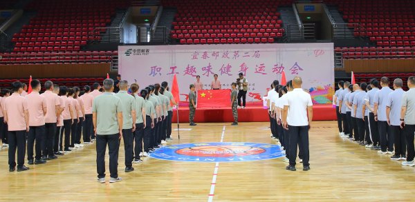 6月2日上午,宜春市體育公園,激昂的樂曲在場館內回響,鮮艷的紅旗在手中舞動,歡樂的宜春郵政人走向賽場。隨著市分公司黨委委員、副總經理葉濤簡短致辭并宣布比賽開始,宜春郵政第二屆職工趣味健身運動會火熱開幕!本次運動會設立了鴻運彩球、千里送信人、合力運球、極限旋轉四個項目,共有市本四個部門工會組成的10個戰隊、100余名運動員參加。