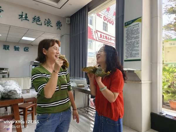 活動中,職工們踴躍參加,積極學習如何包粽子。大家拿著粽葉,舀著糯米、用宣威火腿、豆沙、大棗開始學習,食堂師傅耐心地向職工們講解如何包粽子并做示范,大家包粽子的速度越來越快,三角形、五角形、長條形,各種形狀的粽子在他們手中誕生,一雙雙靈巧的手指把自己對生活的熱愛全都包進了甜甜的粽子里。濃濃的節日氣氛拉近了職工之間的距離,大家開心地笑著說道“自己包的粽子就是好吃,我還要多吃幾個”。