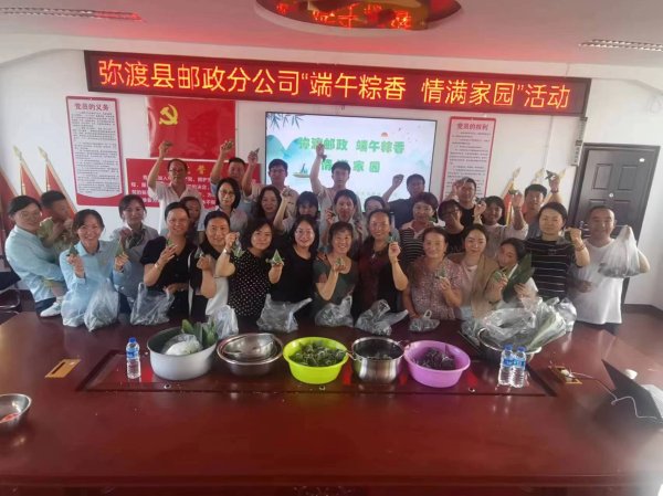彌渡郵政工會開展“端午粽香 情滿家園”主題活動,大家各自展示自己的“粽”實力,形狀各異的粽子包好在盤中,職工互相把象征祝福的五彩繩系在彼此的手腕上,一起送上美好的祝福。
