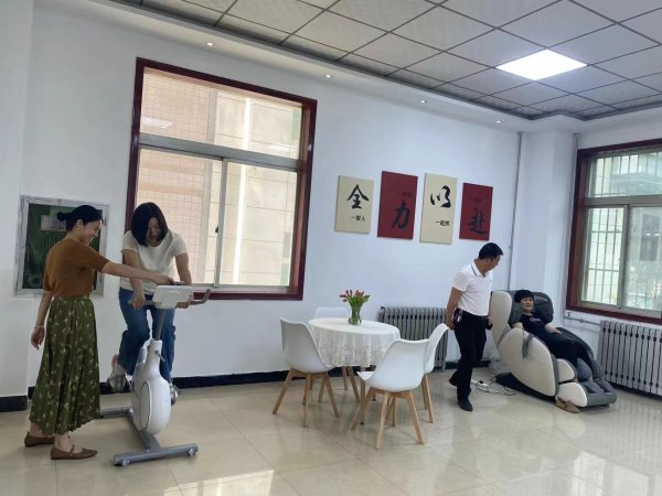在閻良分公司的職工活動室里,兩臺跑步機、兩臺動感單車、圖書室、按摩椅讓職工在休息時間得到了充分的放松,可以充分享受休閑娛樂的時光,大家紛紛在這里駐足,運動、看書、看電影,不必去健身房、書店,職工需要的運動、讀書功能這里都能實現。