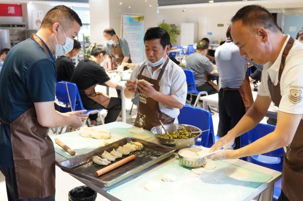 6月7日早8點(diǎn)半,參與包菜角的職工便早早來(lái)到職工食堂,親自動(dòng)手包菜角,大家老手帶新手,為了讓職工們中午吃上香噴噴的菜角干的熱火朝天,你追我趕,終于在午飯前炸出了一盆盆噴香焦脆的菜角,分發(fā)給前來(lái)就餐的職工。