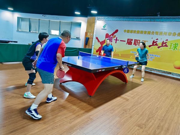 為豐富職工文化生活,提高職工身體素養,增強團隊凝聚力,6月2日,溫州市郵政工會在溫州市工人文化宮舉辦第十一屆職工乒乓球比賽,來自各部門工會50余名選手參加比賽。比賽分男子單打、女子單打、混雙、團體四個項目。經過一天的激烈角逐,綜合辦隊榮獲團體第一名,薛陳斌、林一女、薛陳 斌/林一女分別獲得男子單打、女子單打、混雙第一名。(浙江郵政工會)