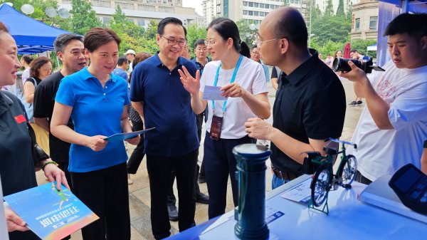 開(kāi)幕式當(dāng)天,第二屆申動(dòng)嘉年華活動(dòng)在盧灣體育中心外場(chǎng)舉辦,22家單位在現(xiàn)場(chǎng)布展,吸引了參賽運(yùn)動(dòng)員和周邊群眾駐足,既充分展示了企業(yè)文化品牌,又為炙熱的賽事氛圍再添一把火。黃浦區(qū)分公司在現(xiàn)場(chǎng)設(shè)攤提供服務(wù),精美的文創(chuàng)產(chǎn)品和郵冊(cè)得到了現(xiàn)場(chǎng)觀眾的極大關(guān)注。(圖為上海市總工會(huì)黨組書記、副主席沈軍參觀郵政展臺(tái),黃浦區(qū)分公司總經(jīng)理劉麗芳做現(xiàn)場(chǎng)講解)