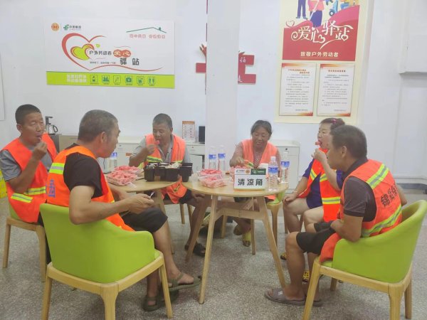 “以前烈日炎炎我們在戶外工作只能躲在人家屋檐下休息,現在有了郵愛驛站,我們休息的時候不僅可以吹空調,還有防暑茶和水果,你們真是太貼心了。”一名環衛工人滿臉笑容地說。