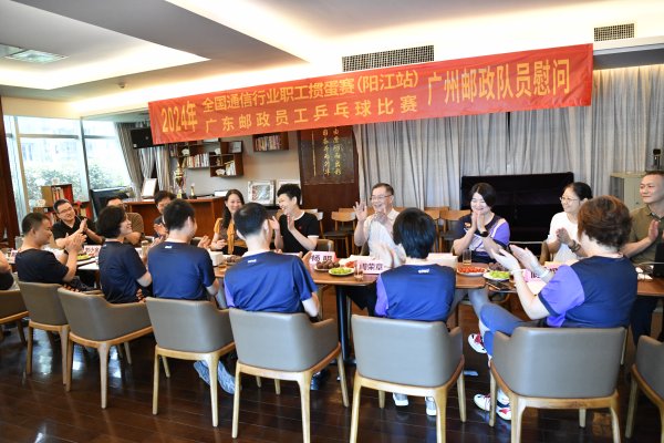 6月27日上午,慰問活動在廣州市分公司青年活動室進行。省郵政工會基層工作部副部長謝綠媛,廣州市分公司副總經理、工會主席莫雋予,工會副主席楊明出席活動。8名乒乓球參賽員工與4名摜蛋參賽員工依次發言,暢談參賽感悟。
