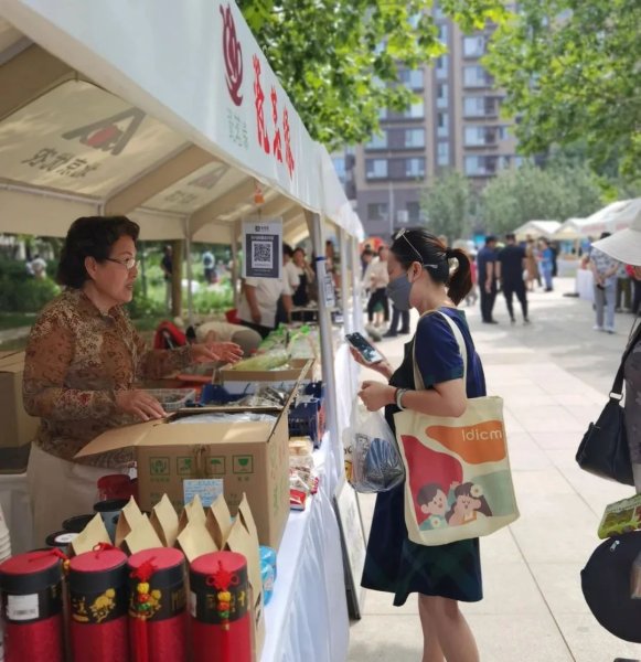 活動現場,人頭攢動,熱鬧非凡。新景家園的居民們紛紛走出家門,來到小廣場,參與這場別開生面的公益活動。廣場上,24家京郊農業企業提供的各種農產品琳瑯滿目,有玫瑰制品、野山茶、京白梨制品、大紅袍花椒、紅頭香椿醬、醬菜、水果番茄、糯玉米、土雞蛋、蜂蜜等特色農產品,吸引了眾多市民的目光。豐富的農產品不僅品質優良,而且價格實惠,深受居民們的喜愛。