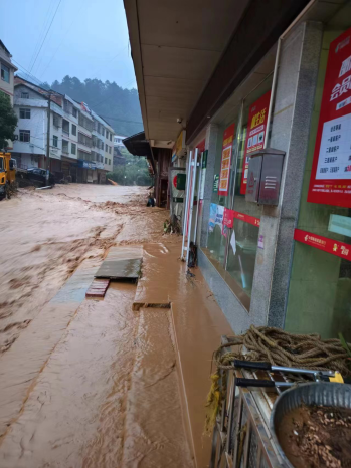 7月1日,災(zāi)情進(jìn)一步升級,綏寧縣麻塘鄉(xiāng)遭遇特大暴雨,洪水肆虐,境內(nèi)出現(xiàn)停水、停電、斷網(wǎng),道路塌方、山體滑坡隨處可見,大河之上貨車、雜物隨波逐流。鄉(xiāng)里的街道更是淪為澤國,20多輛汽車被無情吞噬,經(jīng)濟(jì)損失巨大。深處重災(zāi)區(qū)的麻塘郵政支局雖地勢深處高位,但內(nèi)部積水依然深達(dá)30公分,情況危急。