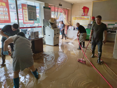 洪水退去,留下的是滿目的狼藉,淤泥深達(dá)十公分。在短暫的安撫后,救援隊伍隨即投入到緊張的災(zāi)后自救中。他們挽起袖子,臟活累活搶著干,沖大坪、洗地板,抹桌椅,通電線、修水管、搬包裹......經(jīng)過七八個小時的救災(zāi),網(wǎng)點逐漸恢復(fù)了往日的面貌。救援人員還貼心安排網(wǎng)點人員前往朋友家,一起做了一桌簡單而溫馨的菜肴,讓員工吃上了一口熱乎飯。直到晚上9點,一行人才拖著疲憊的身軀趕回單位,外面的雨勢卻更加猛烈了。