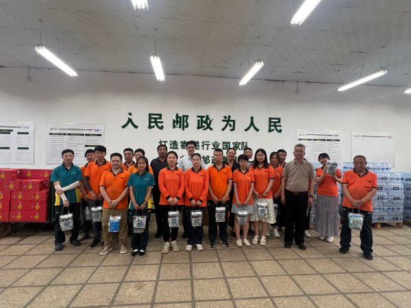 6月27日下午北京市郵政工會王賀利主席、薛筠副主席,來到同城業務分公司進行暑期慰問,并為投遞員們帶來了市公司工會的防暑降溫包。