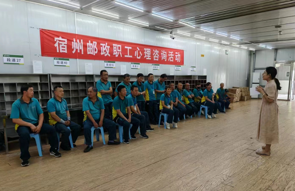 7月12日下午,宿州郵政工會(huì)在北區(qū)營(yíng)業(yè)部組織開(kāi)展職工心理咨詢活動(dòng),20余名一線攬投人員代表參加了本次活動(dòng)。活動(dòng)誠(chéng)邀國(guó)家心理學(xué)碩士、二級(jí)心理咨詢師張老師走進(jìn)郵政基層,與職工開(kāi)展面對(duì)面心理健康沙龍活動(dòng)。活動(dòng)現(xiàn)場(chǎng),老師詳細(xì)了解攬投員們當(dāng)前壓力和情緒現(xiàn)狀,通過(guò)情景體驗(yàn)、現(xiàn)場(chǎng)答疑、個(gè)人咨詢等多種方式,深入淺出地為職工講解了心理保健的重要意義,就大家關(guān)心的如何緩減工作壓力,提升睡眠質(zhì)量等問(wèn)題進(jìn)行了全面解答。活動(dòng)受到基層員工的熱烈歡迎,大家紛紛表示受益匪淺,老師傳授的日常解壓、抗壓、調(diào)節(jié)心理狀態(tài)的具體方法非常實(shí)用,心里“輕快”多了。