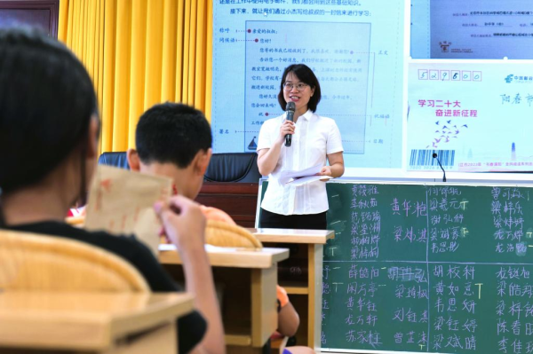 在陽春市石望鎮中心小學,嚴倍麗開展了主題為“勞模進校園”的宣講,為孩子們送上了一堂生動的“郵遞員”職業教育課程,以此深化書信文化的學習與傳承。