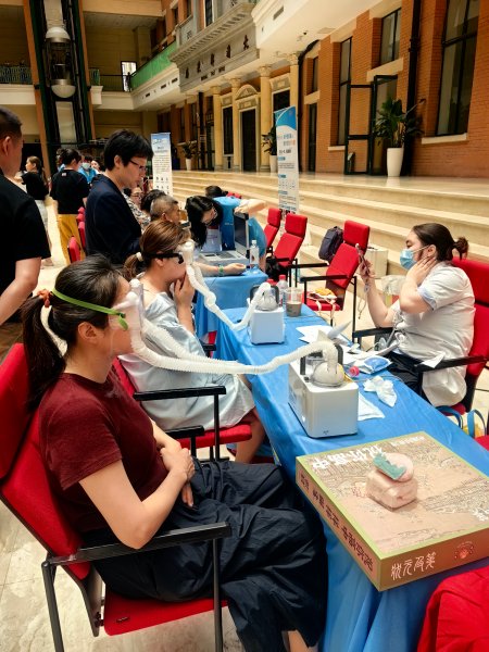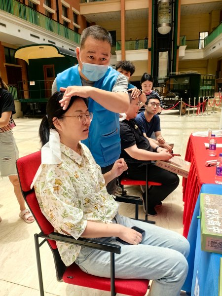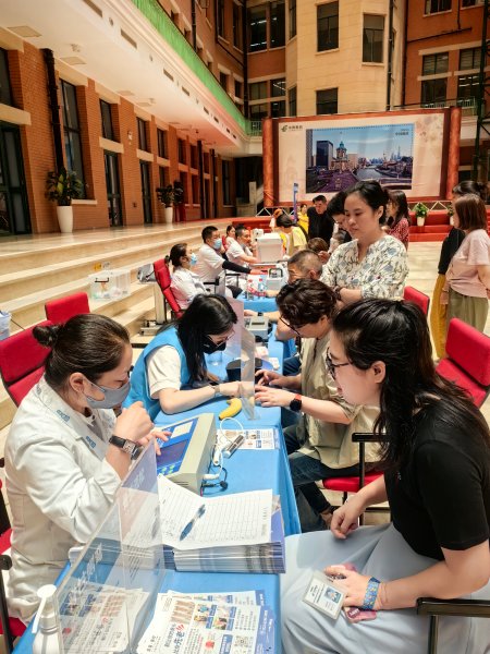 本次活動分上下場進行。上半場,在上海郵政大樓中庭,專設眼科、中醫科、骨科等健康服務。一是關注辦公人員眼健康促進,開展眼健康篩查檢測,提供電腦驗光、裂隙燈檢查、干眼霧化3項檢查服務;二是提供T星人智慧腦機檢測,分析人體88個主要器官組織的即時細胞的能量狀態;三是提供中醫服務,進行智能中醫脈診評估,給出診斷報告和建議,并邀請2名中醫推拿,為現場職工提供肩頸、背部推拿治療,預防并調節職場常見不良坐姿導致的肌肉及脊柱問題;四是關注骨骼問題,開展骨質疏松篩查、脊柱側彎測量。各項檢查服務接待人次達到30-60余人次。服務廣受好評,在員工的強烈要求下,活動時間延長了2小時。