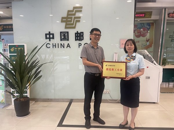 此次慰問活動還伴隨著一個重要的時刻,楊嘉樹副總經理為網點授牌,祝賀南湖營業所獲評“全國郵政模范職工小家”榮譽,并肯定了網點全員長期以來辛勤工作、團結協作、創新發展取得的成績。