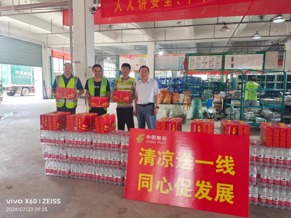 大暑之后,烈日炎炎,為切實做好一線職工夏季防暑降溫工作,加大關心關愛力度,近日,宣城市分公司黨委、工會來到郵政生產一線,為炎炎夏日依然堅守在工作崗位的一線職工們送去關懷問候和消暑物資。 22日,邵來輝總經理首先后來到市寄遞事業部郵件處理中心慰問高溫天氣下仍在一線工作的職工,為他們發放了清涼物資并且悉心傾聽職工們的需求,對他們堅守誠信美德、在高溫酷暑下堅守崗位、愛崗敬業、勇于創新、無私奉獻的精神表示由衷的敬意和親切的慰問,并叮囑他們在生產生活中注意安全,做好防暑降溫措施,安全度夏。 市公司其他黨委成員、工會負責人近日也分赴全市郵政一線送清涼。一份清涼,一份關懷,宣城市分公司黨委、工會用實際行動致敬每一份堅守,保障職工幸福感、歸屬感、滿意度。
