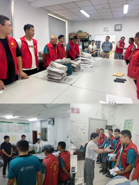 8月1日,區分公司黨委書記、總經理王仁衛,帶隊至九亭支局、東開支局、大宗處理中心、直投中心等單位開展高溫慰問,提醒大家注意休息,在高溫天氣下保存體力,同時對標先進單位積極投身于大走訪活動和協同發展中去。區分公司紀委書記、副總經理朱一,帶隊至洞涇支局、陳坊橋支局、小昆山支局和龍源路支局。在現場對慰問單位的服務質量、工作環境等作了指導,對大家在高溫天氣下仍堅守崗位表示感謝,提醒大家要注意高溫防暑,關注安全生產。8月2日,區分公司副總經理、工會主席錢葉,帶隊至泖港支局、石湖蕩支局、葉榭支局以及車墩支局,感謝大家在高溫下的堅守,鼓勵大家堅持大走訪,提高協同作戰能力,并關注高溫防暑,確保安全生產。