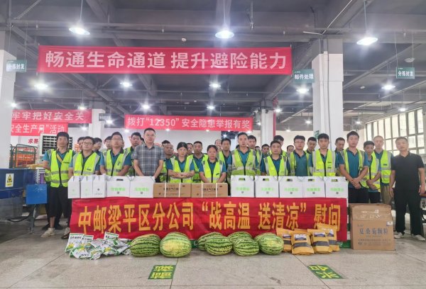 7月25日,梁平郵政領導班子帶隊分3組到郵件處理中心、經警駕押及基層一線網點開展“戰高溫、送清涼,防汛情、保通信”慰問活動,為高溫天氣堅守一線的員工送上防暑降溫藥品、解暑清涼飲品等,