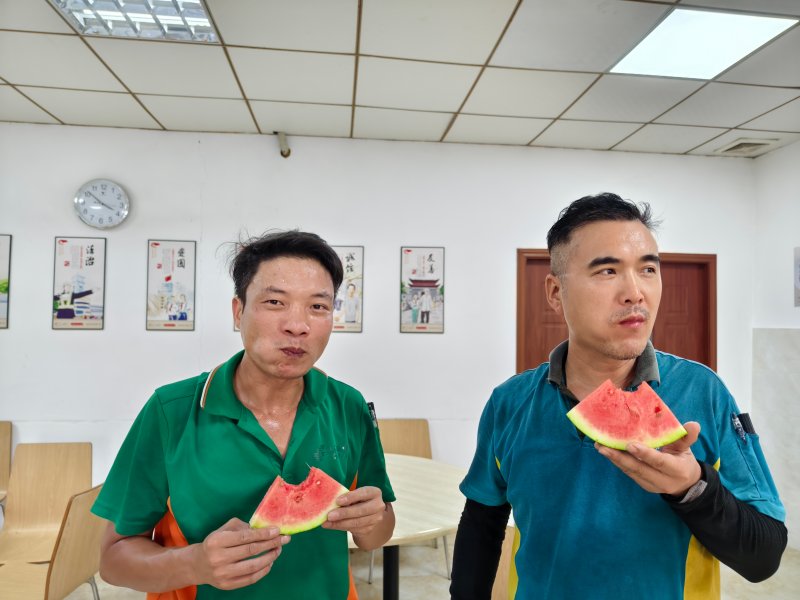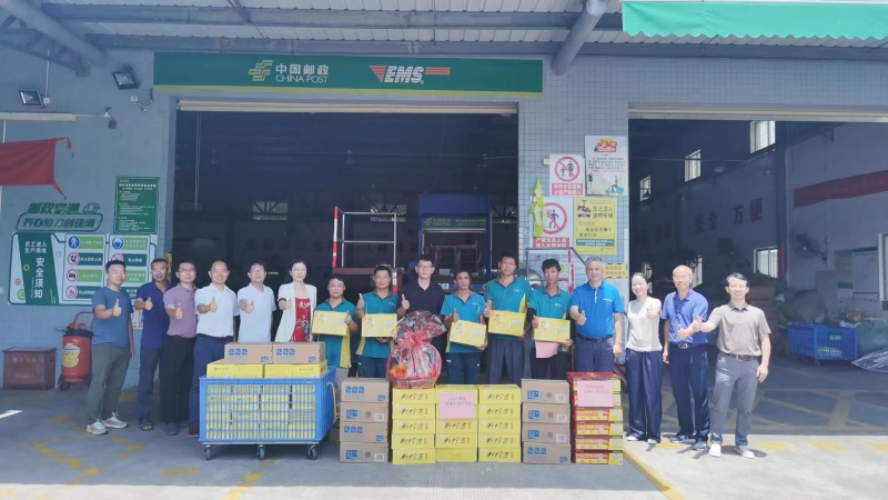 宋蕾還前往黃江分公司攬投部進行慰問。東莞市分公司各級工會也積極響應,不畏惡劣天氣,積極組織開展了“夏送涼爽保安全”慰問活動。各工會將一箱箱清涼飲料、一包包涼茶沖劑、一個個冰鎮西瓜、一煲煲解暑糖水、一袋袋防暑降溫藥品送到頂著烈日工作的營銷員、投遞員等手里,并親切詢問大家的工作和身體狀態,反復叮囑投遞員出門送快遞時,要注意防暑降溫,叮囑金融網點營銷員外拓時要做好防護措施,每一句叮嚀都充滿了對員工的敬意和關懷。