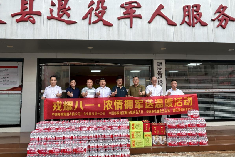 此前,肇慶市德慶縣郵政分公司會同郵儲銀行、電信公司、煙草專賣局聯合開展了“戎耀八一·濃情擁軍送溫暖”主題慰問活動。慰問組一行深入德慶縣武裝部、退役軍人事務局和消防局,向長期堅守崗位、無私奉獻的軍人及退役軍人致以崇高的敬意和誠摯的慰問。德慶縣郵政分公司慰問組為現役軍人送上王老吉等慰問品,表達了郵政系統對軍人的深情厚意和對國防事業的堅定支持。