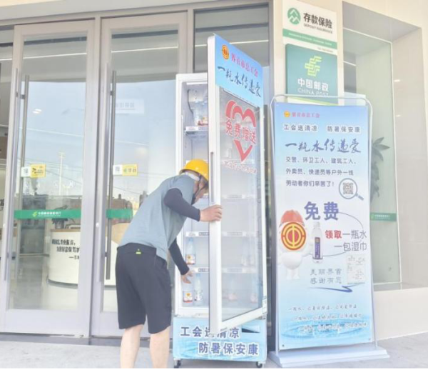 為進一步關心關愛戶外勞動者,充分拓展和發揮“郵愛驛站”作用,8月1日起,阜陽郵政和界首總工會聯合開展“清涼‘驛’夏 一瓶水傳遞愛”送清涼活動,在界首東城支局“郵愛驛站”外設置立式冰柜,為高溫酷暑下堅守工作崗位的戶外勞動者提供一個清涼的愛心港灣。