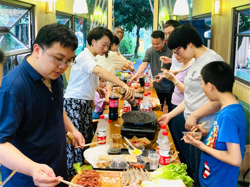 隨后工會精心安排的燒烤盛宴,將大家拉回了“人間煙火”的生活中,牛肉、大蝦、雞翅、烤腸等美食逐一上桌,香氣四溢,員工們圍爐而坐,盡情享受著自助燒烤的樂趣,歡聲笑語與裊裊炊煙交織在一起,營造出溫馨而歡樂的氛圍。