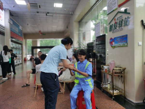 為了方便戶外勞動者,十堰分公司選擇在交通方便、人流量大的臨街網點建設“郵愛驛站”,配備飲水機、微波爐、桌椅、便民藥箱、雨傘、手機充電排插等基礎服務設施,免費為環衛工、快遞員、送餐員、城管、交警群體提供防暑急救、納涼休息、應急充電、茶水飲用、飯菜加熱等暖心服務,力所能及地幫助解決戶外勞動者喝水難、吃飯難、休息難等問題,此舉也獲得了廣大市民的普遍好評。