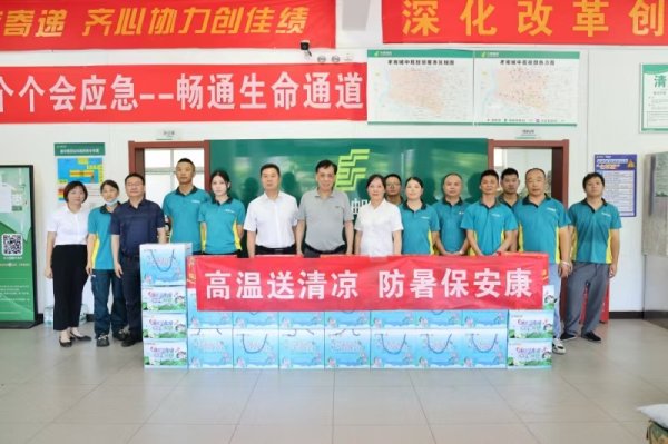 工會送清涼,防暑保安康。2024年8月5日上午,烈日炎炎,湖北省分公司紀委書記吳建華等領導來到孝感郵政網路運營中心進行高溫慰問,吳書記一到中心詳細詢問了分揀運輸作業生產情況,中心向吳書記重點匯報了在高溫天氣下采取的防暑降溫措施以及錯峰作業情況,他親切對現場員工說:“高溫期間進出口作業工作強度大,體力消耗大,我代表省分公司對各位同志表示親切的慰問,希望大家在高溫期間注意身體,一如既往做好快遞進村運輸、出口集包、夠量直發等工作”。同時吳書記強調一定要做好無著郵件的保管、登記、處理工作,