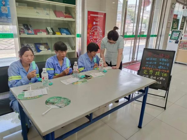 在烈日炎炎的盛夏,金山區分公司秉承“人民郵政為人民”的宗旨,將轄內的14個金融網點變身為一處處清涼的“愛心驛站”,為廣大戶外工作者提供避暑的綠洲。這些驛站專為環衛工人、外賣小哥、快遞員、志愿者等戶外工作者,開啟了一項溫馨的避暑服務模式。