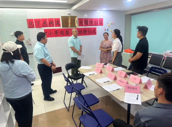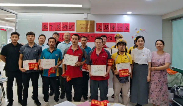 8月22日,由北下關街道辦與大慧寺社區聯合主辦,海淀區分公司魏公村支局大慧寺路支行承辦的“小哥觀察員”受聘儀式在大慧寺路支行圓滿舉行。此次活動旨在通過創新服務模式,構建更加和諧、安全的社區環境。活動首先介紹了“小哥觀察員”工作方案的核心內容,該方案充分利用快遞、外賣小哥穿梭于城市大街小巷的獨特優勢,組建了一支由他們構成的“小哥觀察員”隊伍。 通過在各社區建立微信群,這些觀察員將深度融入社區治理,積極參與平安建設、文明創建、公益服務、應急處置及義務宣傳等工作,成為連接社區與居民的橋梁,及時反映社區內的衛生問題、安全隱患等,為社區治理貢獻“新”力量。