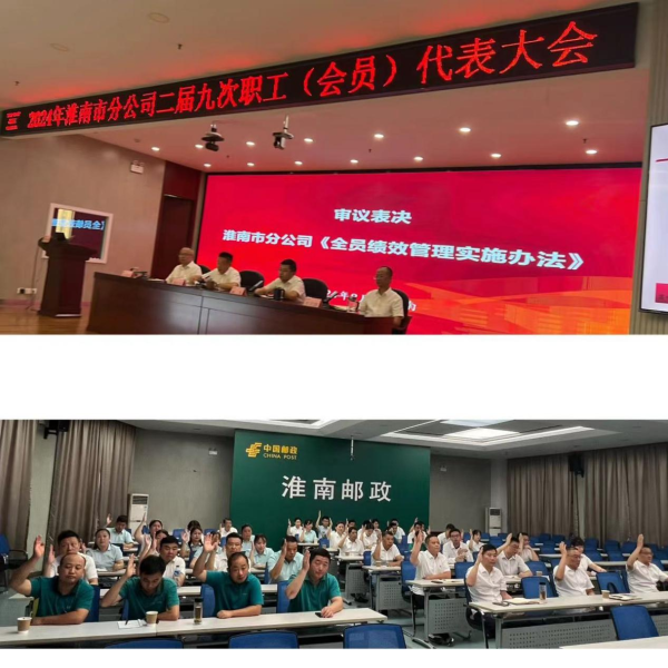 2024年8月28日,淮南市分公司召開第二屆第九次職工(會員)代表大會,會議審議表決了《淮南市郵政分公司全員績效考核辦法》(以下簡稱辦法)。 《辦法》對市分公司員工工作質效的量化考核方法,考核結果運用在員工年終績效獎勵中,是涉及員工切身利益的大事件。 為保障會議順利開展,市郵政工會提前將會議資料通過郵E聯群發給市分公司二屆職工代表,要求職工代表認真踐行職責,廣泛征求職工意見。 預備會議對代表資格審查進行審查、人數清點并通過會議議程;正式會議,市分公司人力資源部經理對《辦法》進行了詳細解讀并對代表們提出的問題進行了細致解答,經審議,代表們舉手表決全票通過了《辦法》。陶慶余主席做會議小結,并宣讀決議。 經職工(會員)代表表決通過的《辦法》將通過OA印發,自發布之日起生效。