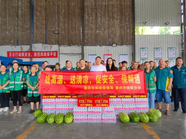 重慶近期超40度高溫天氣持續(xù)不斷,9月5日,重慶市快遞協(xié)會(huì)秘書長(zhǎng)鄧堅(jiān)一行到涪陵郵政開(kāi)展“戰(zhàn)高溫,送清涼,促安全、保通暢”慰問(wèn)活動(dòng),重慶市郵政管理局三分局相關(guān)部門人員參加。