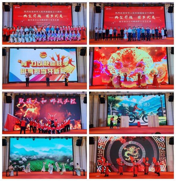 盛世歡歌頌華誕,凝心聚力譜新篇。為慶祝中華人民共和國成立75周年,助力全市郵政金融業務2024-2025年跨賽再創佳績。9月21日,南平市郵政工會“典型引領 圓夢武夷”為主題的迎“國慶”郵政職工文藝匯演在建陽區隆重舉行。來自市分公司領導班子、市機關部門、各縣(市、區)分公司240余名職工參加了匯演活動。