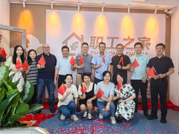 活動現場,五星紅旗與職工之家內的紅色裝飾交相輝映,營造出濃厚的愛國情懷與節日氛圍。深圳市分公司工會副主席曾廣斌等領導嘉賓、坪山局領導班子與全體員工代表歡聚一堂,共同見證了這一具有歷史意義的時刻。