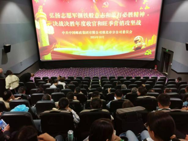 10月18日晚,淮北郵政組織員工集中開(kāi)展觀影活動(dòng),市分公司近百名員工在永利橫店影院集體觀看《志愿軍:存亡之戰(zhàn)》。