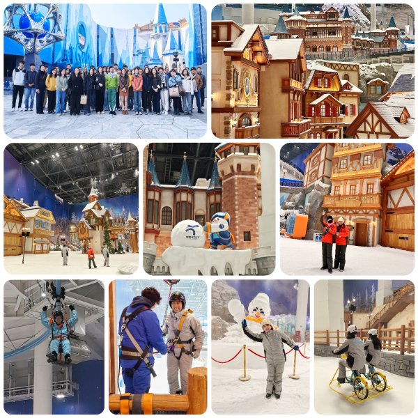 在工作人員的帶領下,大家坐上雪國列車小火車,開啟了今日娛雪世界的探索之旅。大家分別參與了冰洞探索、雪山探險、冰上自行車、太空球等項目,每個人的臉上都洋溢著笑容。有的還勇敢挑戰了雪山跳臺和飛雪滑翔機,展現了自己的勇氣和技巧。