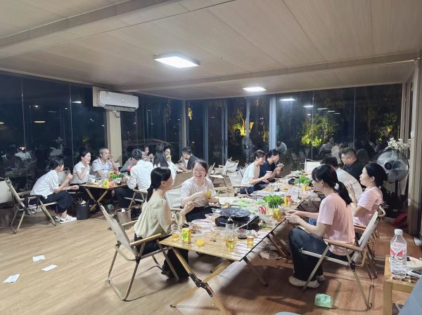 抵達營地后,員工們迅速投入“美食大作戰”,領取各自的任務分工,有的忙著布置烤架、烤爐,有的忙著點火、燒炭,有的忙著給食材刷制蘸料,大家配合默契,忙得不亦樂乎。不一會兒,燒烤架、烤爐上便飄散出陣陣香味,員工們一邊品嘗著自己親手烤制的美食,一邊閑聊著工作和生活中的趣事。