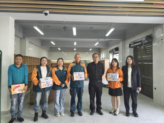 在德山分公司和郵區中心張純嘉副總與投遞員們親切交談,詢問工作與生活情況,感謝大家在工作中的辛勤付出,并叮囑大家在抓好生產經營和為客戶服務的同時,一定要時刻牢記“安全第一、預防為主”,工作時要做好自我防護,合理安排作息時間,確保自身安全和身心健康。并要求郵區中心和各站點負責人合理安排生產,優質、安全、高效應對旺季高峰,并切實做好一線員工后勤保障工作。