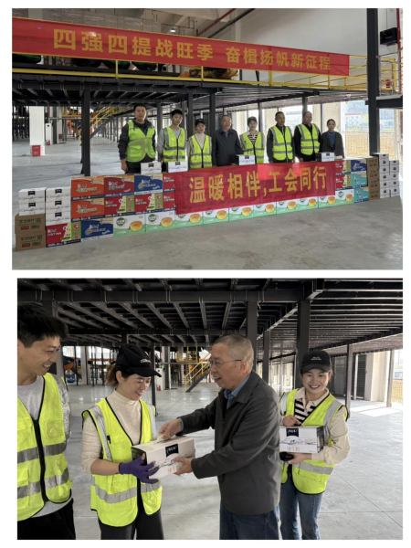 當前正值雙十一旺季生產,宣城郵政分公司黨委、工會開展了慰問寄遞事業部一線員工活動,為他們送去八寶粥、牛奶、面包、方便面等慰問品,為戰在旺季生產一線的員工們送去關心和關愛。