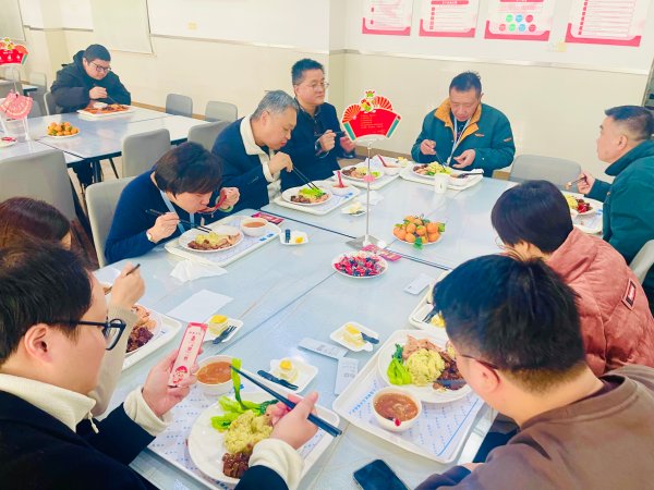 活動現(xiàn)場布置溫馨,公司領導熱情參與,與員工們共同圍桌而坐,一起享用為元旦特別推出的“鴻運當頭”新年套餐,搭配精致的水果、蛋糕茶歇,讓整個食堂充滿了節(jié)日的喜悅。美食的香氣彌漫在空氣中,讓員工們在忙碌的工作之余,品嘗到了甜蜜的滋味,感受到了家的溫暖,幸福感滿滿。