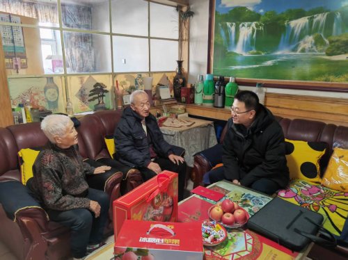 在離休老同志家中,市分公司領導與老同志親切交談,詢問了解其身體健康狀況、生活情況,叮囑他要保重身體,并送上春節的慰問和節日的祝福。