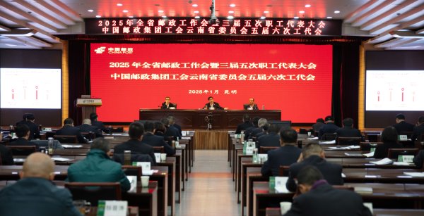 2025年1月21日,中國郵政集團有限公司云南省分公司2025年工作會議暨三屆五次職代會和中國郵政集團工會云南省委員會五屆六次工代會在昆明召開,省分公司黨委書記、總經理嚴明,省分公司黨委委員、副總經理、工會主席李強,省分公司黨委委員、紀委書記吳沛出席會議。