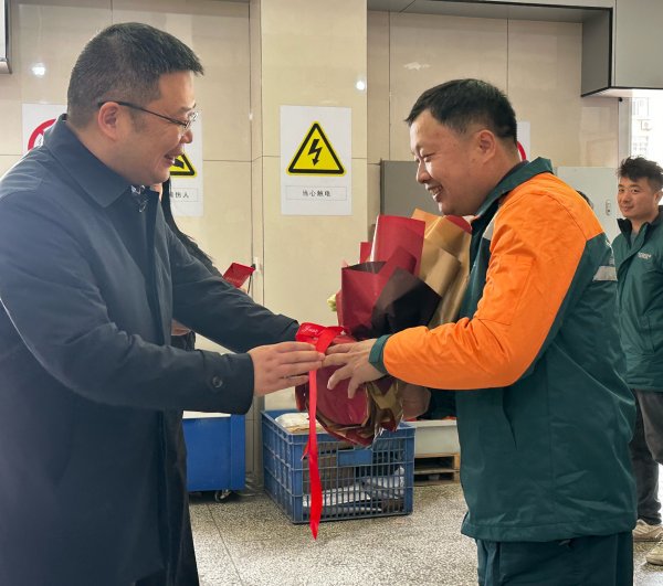 在仙來攬投部,張克巔與攬投員們一一握手,并為市勞模胡二保送上了鮮花及慰問金。他囑咐當前正面臨春節生產旺季,不僅要做到寄遞服務質量與安全生產工作兩手抓,還要及時了解員工需求,做好員工的生活保障工作。