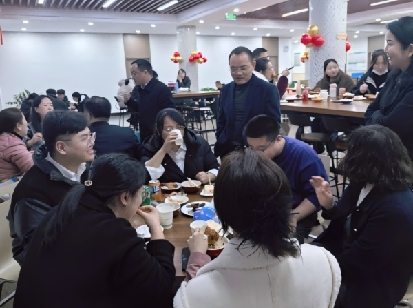 活動當晚,整個公司食堂被布置的新年氛圍感實足,湖州市分公司領導班子也親自到現場與新入職大學生們及積極報名參與此次活動的一些老員工們一起包餃子。當一張張普通的餃子皮經過不同的手包出各種造型。有包柳葉餃的、有包包子餃的、有包燒麥餃的、有包盒子餃的......真的是創意無限。大家一邊包餃子一邊交流各自的包餃子經驗,現場氣氛融洽而溫馨。當一盤盤餃子出鍋時,大家紛紛圍坐在一起品嘗、感受勞動帶來的喜悅和成就感。分享美食的同時,老員工引薦新入職大學生與不同崗位的人相互認識增進了解、建立友誼。