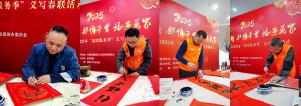 活動中,深圳郵政文聯書畫社團的成員現場揮毫書寫春聯。他們凝神靜氣,每一筆都蘊含著對新年的美好祝愿。一張張喜慶的紅紙上,春聯和福字躍然其上,洋溢著濃濃的節日氣氛。